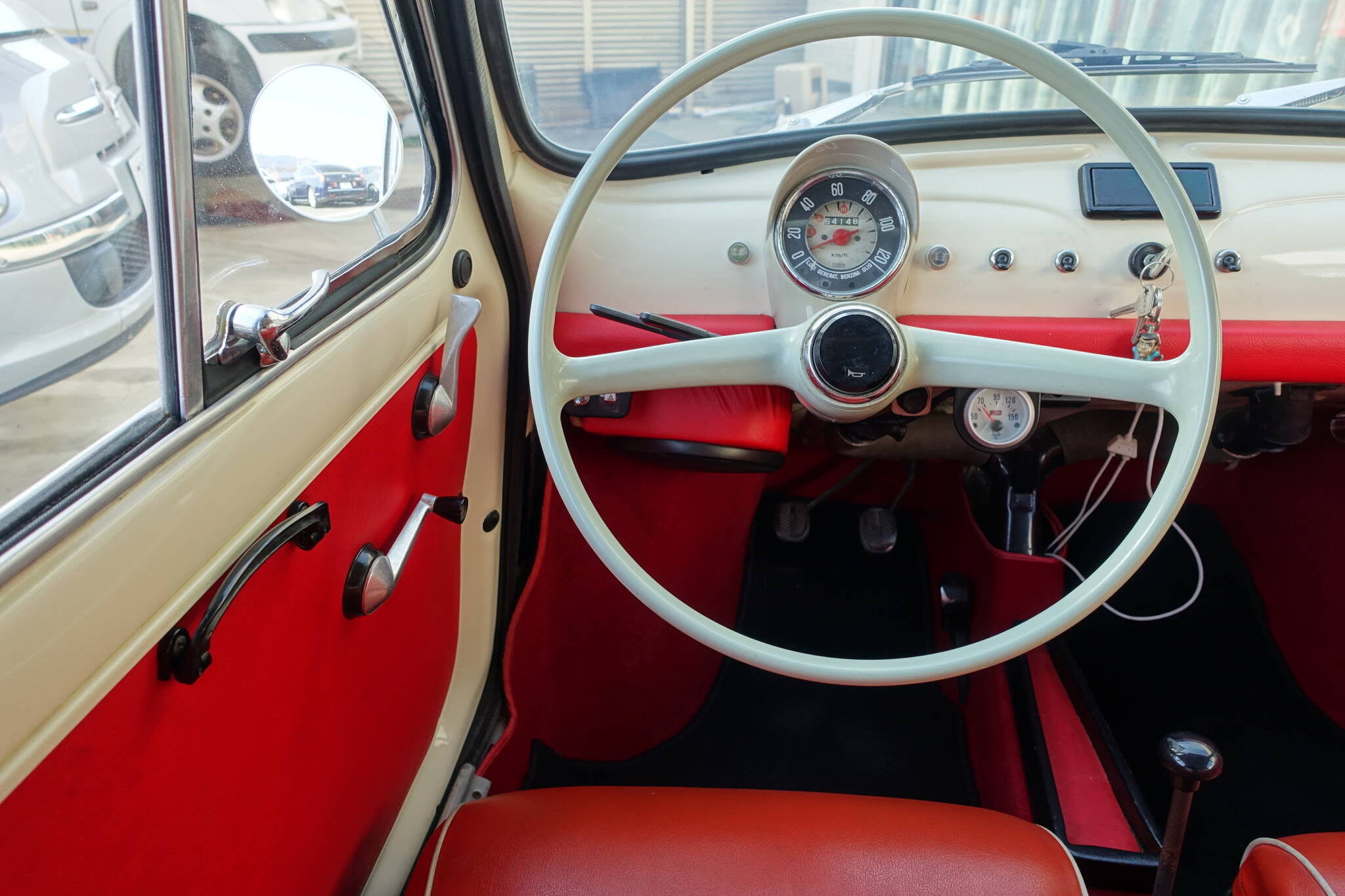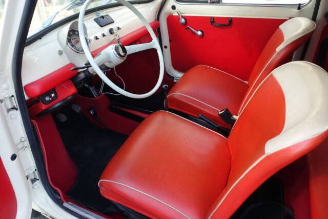 1968y FIAT 500F イタリア 愛知 年式 昭和43年 走行距離 64200km 車検 令和8年10月 外装色 アイボリー 内装色 レッド その他 価格 支払総額:263.1万円 本体価格:250.9万円 (すべて税込み) 248万円